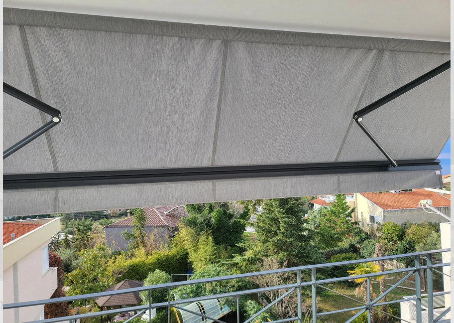 Ηλεκτρικά ρυθμιζόμενη τέντα στο σαλόνι με τηλεχειριστήριο.